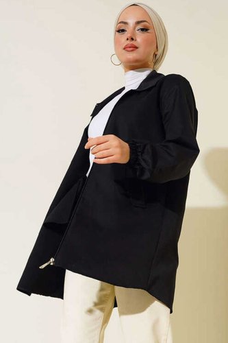 5908 Cep Kapaklı Kısa Trençkot Siyah