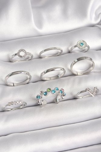 • Pirinç Gümüş Renk Renkli Zirkon Taşlı Kadın Yüzük Seti