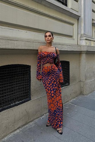 • Modelin Ölçüleri: Boy:165, Kilo:55, Göğüs:90, Bel:72, Kalça: 100