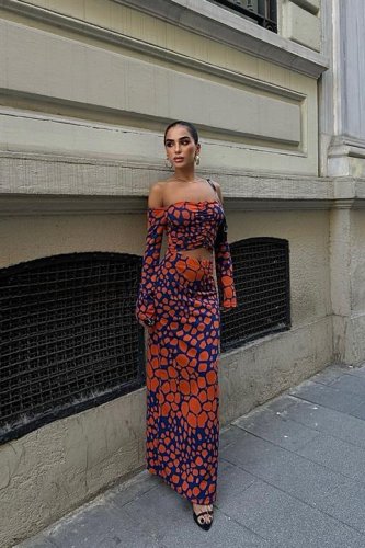 • Pansy Cut Out Animal Desen Elbise 26788