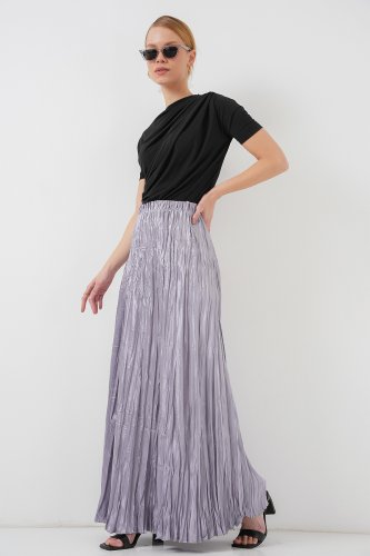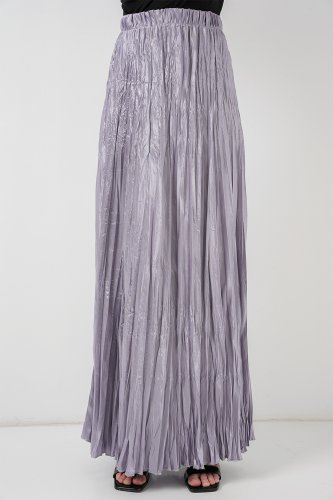 Uzun Kırışık Parlak Etek 8034 Gri