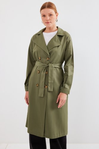 • 5853 Kruvaze Yaka Trençkot Haki