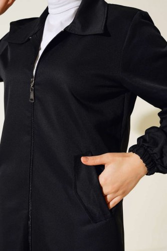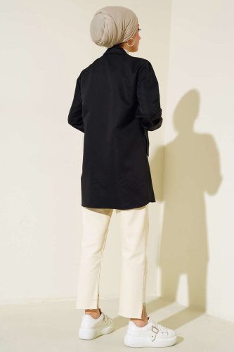 • 5908 Cep Kapaklı Kısa Trençkot Siyah