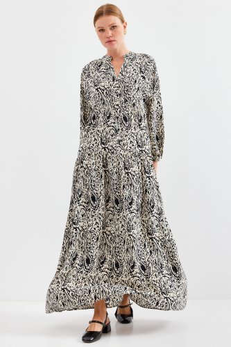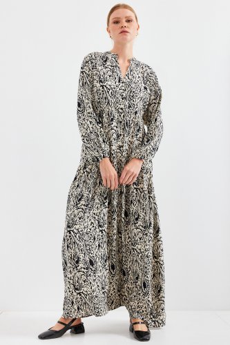 • Desenli Siyah Viskon Tesettür Elbise 2423