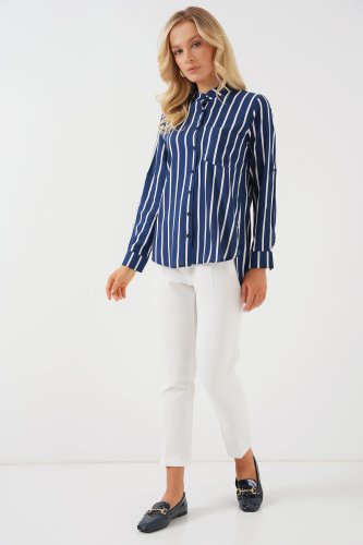 • Uzun Kollu Çizgili Gömlek 20283 ALacivert