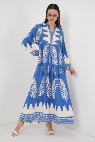 • 2423 Otantik Desenli Tesettür Elbise H İndigo