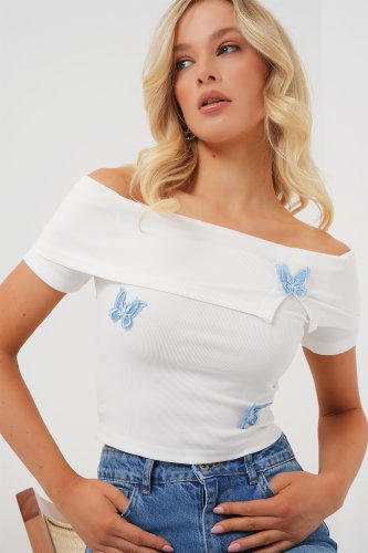 Madonna Yaka Kelebek Detaylı Bluz 957 Beyaz