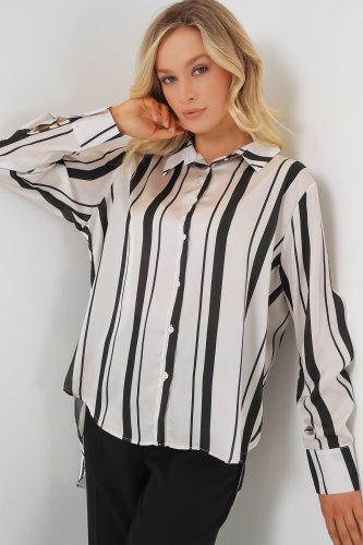 Çizgili Uzun Saten Gömlek 20291 Siyah